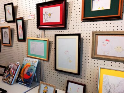 2月の縁側カフェで開催した『へたうまびじゅつかん』の”へたうま”作品たちをつながりギャラリーで展示しています。