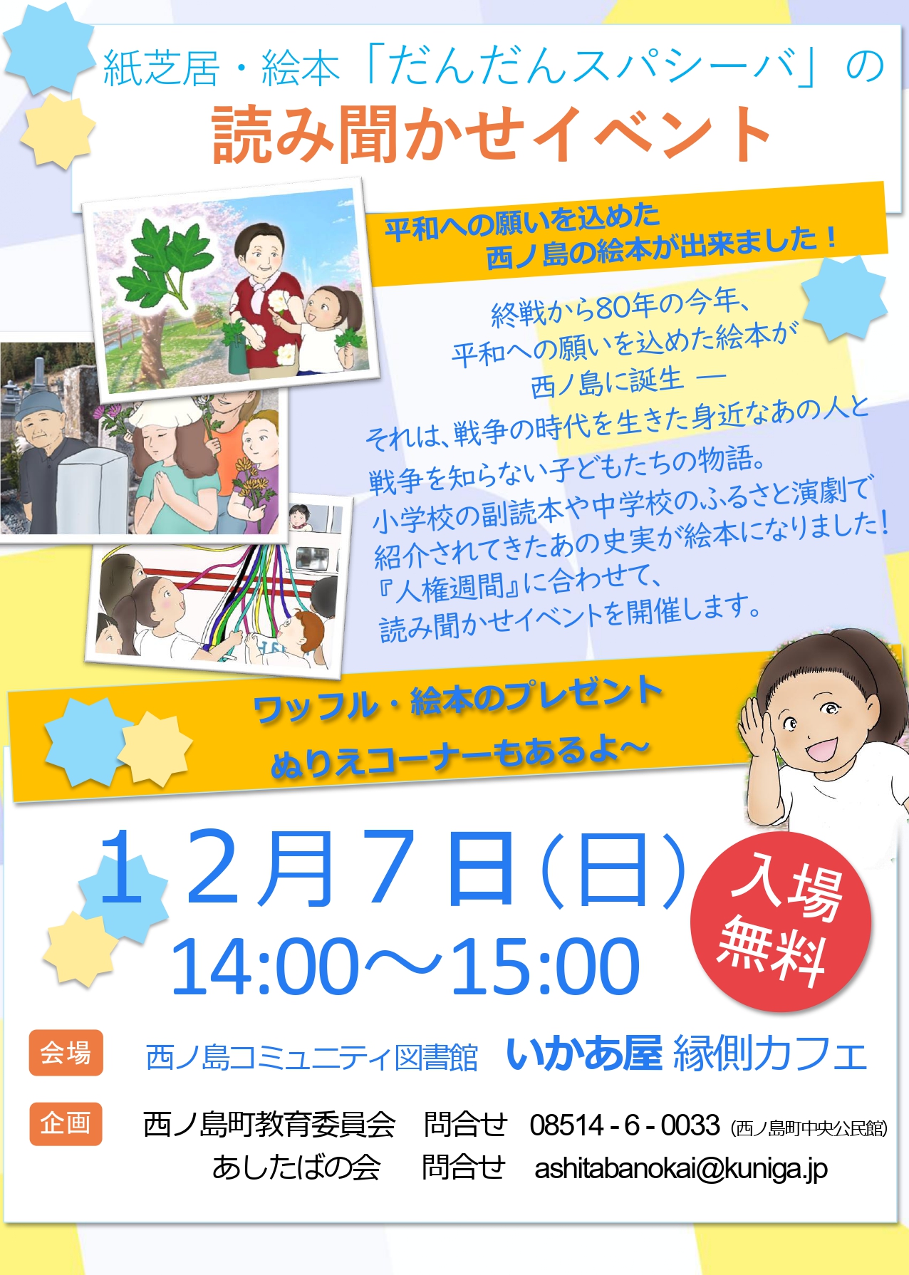 2025/12/5 (金) 12月4日~10日 人権週間の展示とイベントのお知らせ 2025/12/2 (火) もうすぐクリスマス🎄✨ 2025/11/19 (水) 12月13日『健康づくり(お酒・たばこ)に関するイベント』のお知らせ 2025/11/16 (日) 『島前科学作品展 巡回展示』のお知らせ 2025/11/16 (日) 11月30日「いかのワークショップ」のお知らせ 2025/11/9 (日) 11月新着図書のお知らせ 2025/11/6 (木) 『小学生の税に関する絵はがき』展示のお知らせ 2025/11/3 (月) 11月15日・16日 映画『うんこと死体の復権』上映のお知らせ 2025/10/30 (木) 『ひとはこ館長』展示中です☆ 2025/10/26 (日) 10月26日~11月3日「文化展」のお知らせ 1 2 3 4 5 6 … 27 >