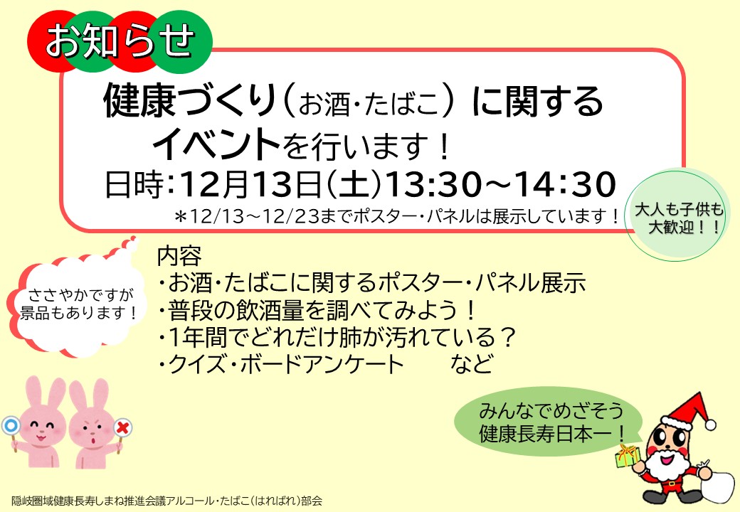 2025/11/19 (水) 12月13日『健康づくり(お酒・たばこ)に関するイベント』のお知らせ 2025/11/16 (日) 『島前科学作品展 巡回展示』のお知らせ 2025/11/16 (日) 11月30日「いかのワークショップ」のお知らせ 2025/11/6 (木) 『小学生の税に関する絵はがき』展示のお知らせ 2025/11/3 (月) 11月15日・16日 映画『うんこと死体の復権』上映のお知らせ 2025/10/30 (木) 『ひとはこ館長』展示中です☆ 2025/10/26 (日) 10月26日~11月3日「文化展」のお知らせ 2025/10/24 (金) 島根県立図書館からの借受本について 2025/10/12 (日) ハロウィン展示のお知らせ 2025/10/7 (火) 10月新着図書のお知らせ 1 2 3 4 5 6 … 27 >