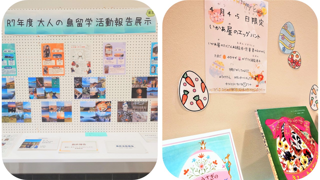 2026/04/14 (火) 4月新着図書のお知らせ 2026/04/11 (土) 『令和7年度 大人の島留学活動報告』『🥚いかあ屋のエッグハント🐰』展示のお知らせ 2026/04/4 (土) 『2025年度西ノ島中学校職場体験学習ポスター』展示のお知らせ 2026/04/1 (水) ティラノサウルス募集のお知らせ 2026/03/28 (土) イースターのおたのしみ!🐰🥚 2026/03/22 (日) 『雑誌スポンサー・サポーター募集』『雑誌入れ替え』のお知らせ 2026/03/20 (金) 🌈2026いかあやフェス参加者募集!🎈 2026/03/14 (土) 『しまのわトラック』『空き家カフェ』『新校名募集』『色紙飾り』展示のお知らせ 2026/03/10 (火) 3月新着図書のお知らせ 2026/02/22 (日) 『へたうまびじゅつかん』作品展示のお知らせ 1 2 3 4 5 6 … 29 >
