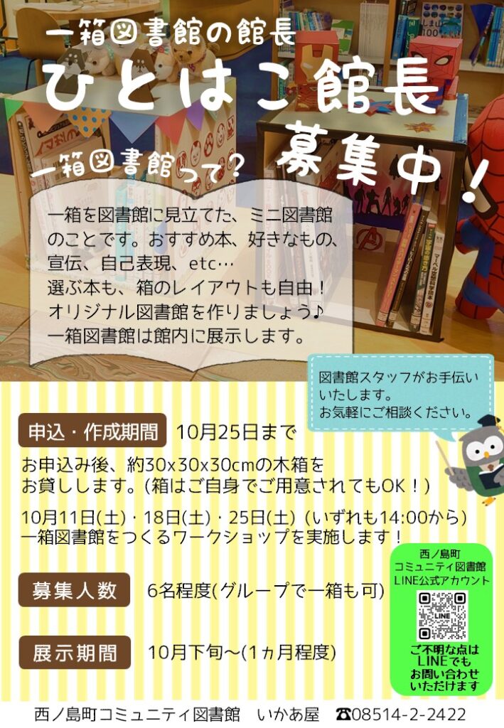 読書週間にあわせて、いかあ屋では一箱図書館の館長さん「ひとはこ館長」を募集しています!