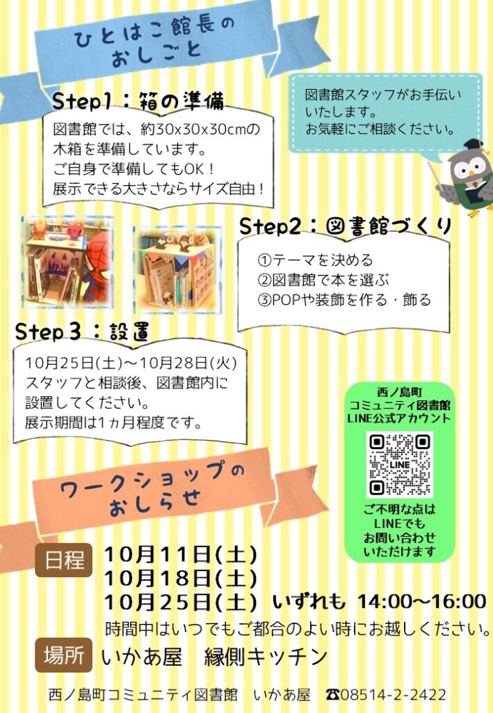 読書週間にあわせて、いかあ屋では一箱図書館の館長さん「ひとはこ館長」を募集しています!