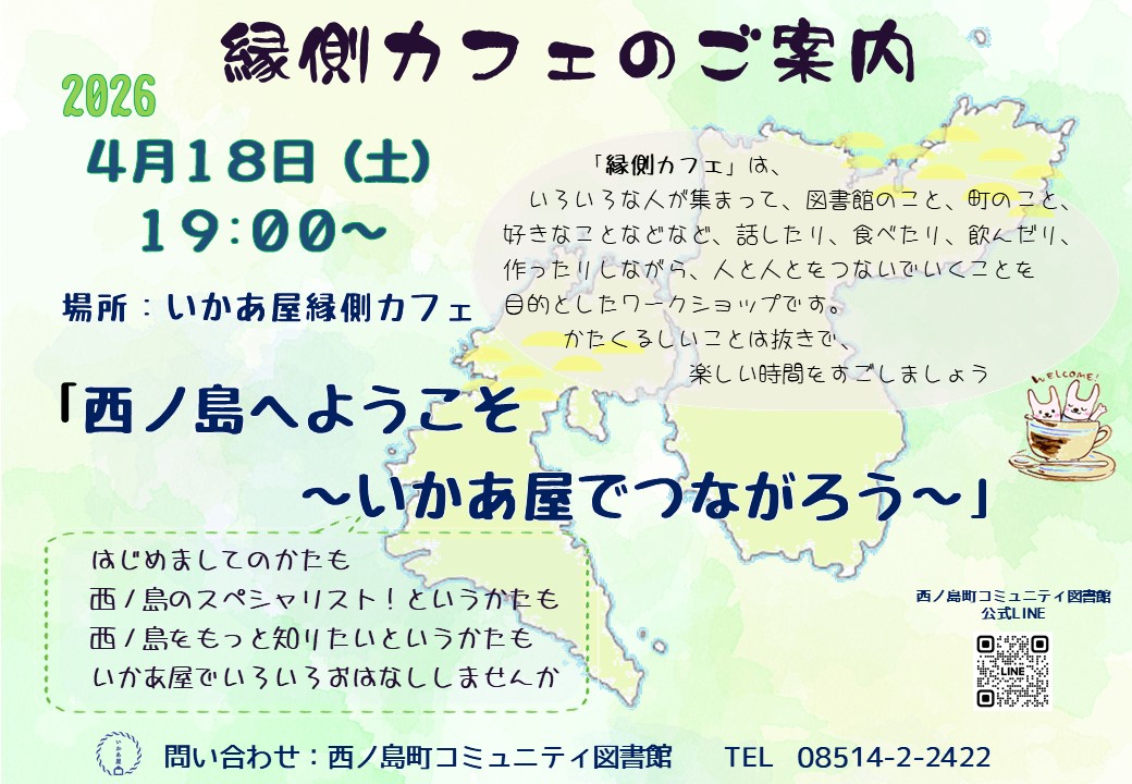 2026/03/2 (月) 縁側カフェ 2026/02/4 (水) 哲学カフェ 2026/02/1 (日) 縁側カフェ 2026/01/4 (日) 縁側カフェ 2025/12/1 (月) クリスマスおはなし会 2025/12/1 (月) 縁側カフェ 2025/11/3 (月) 縁側カフェ 2025/10/5 (日) 縁側カフェ 2025/10/3 (金) 大人のおはなし会(読書週間イベント) 2025/09/17 (水) 縁側カフェ 1 2 3 4 5 6 … 9 >